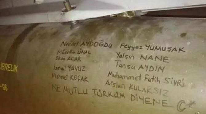 TSK'nın Kuzy Irak'a düzenlediği ve ismine Şehit Binbaşı Arslan Kulaksız operasyonunda F-16 uçaklarına yüklenen füzelere şehit olan polis ve askerlerin isimleri yazıldı.