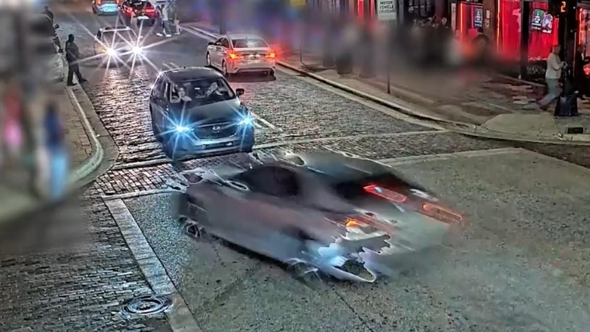 Aşırı hız yapan sürücü, şehir merkezine girerek aracını bir gece kulübüne çarptı.