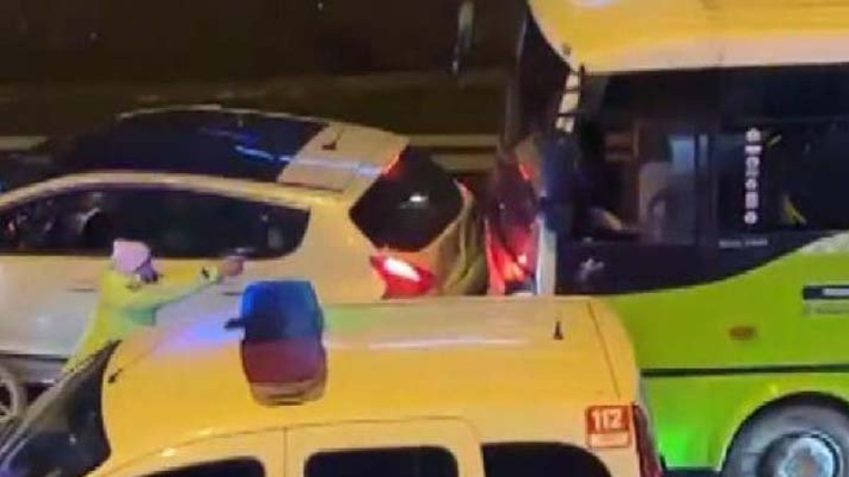 Bu sırada köprüden de geçen özel halk midibüsünün D-100 Karayolu Okmeydanı mevkiinde önü kesildi.