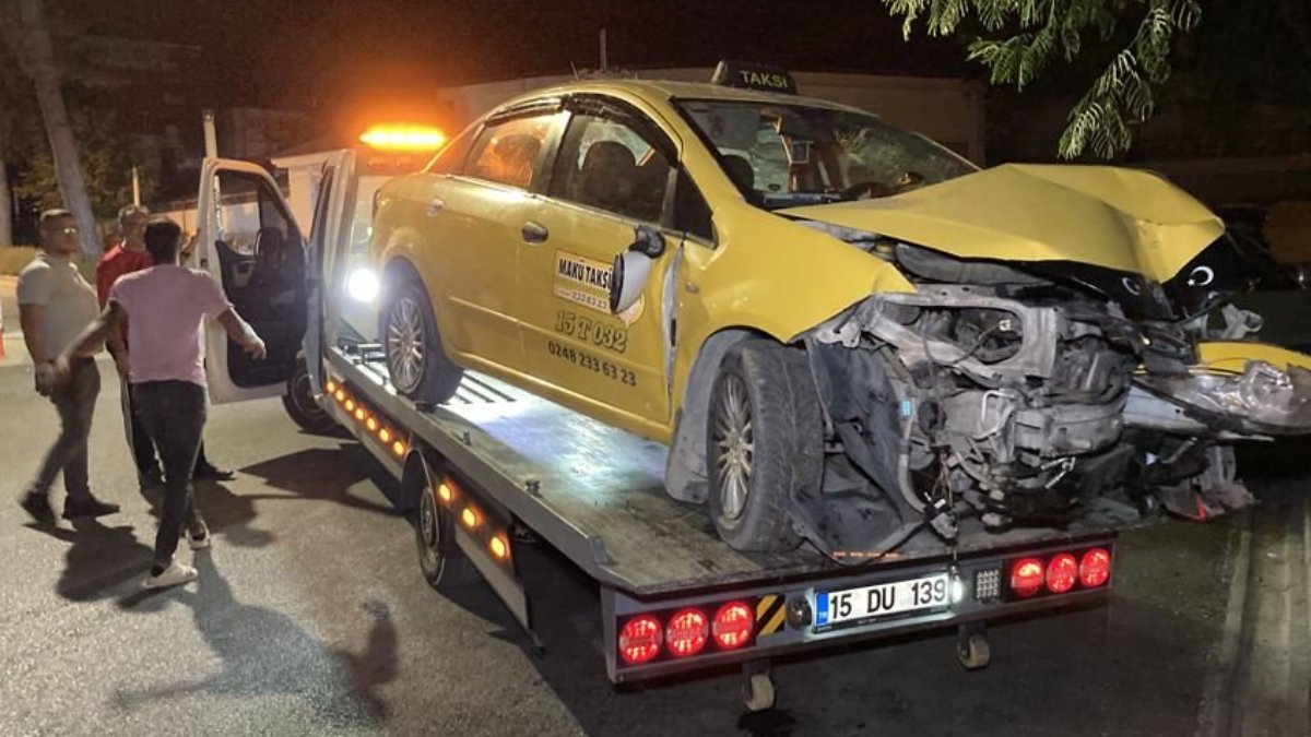 Burdur'da polisten kaçarken çay bahçesine giren taksinin sürücüsünün alkollü olduğu ve ehliyetsiz olduğu belirlendi.
