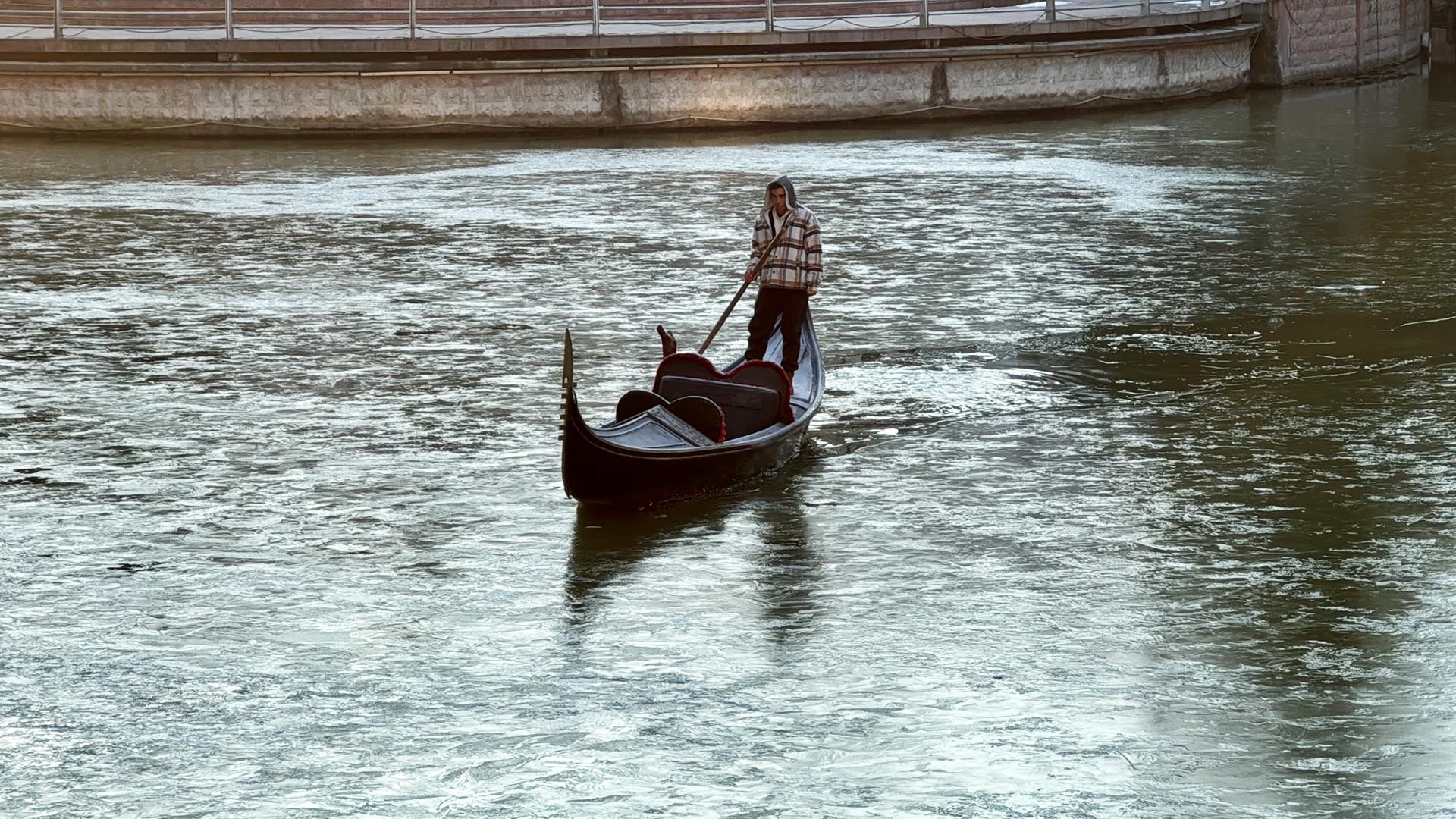 Porsuk üzerinde bir gondol, buz yüzeyini kırarak ilerlemeye çalıştı.
