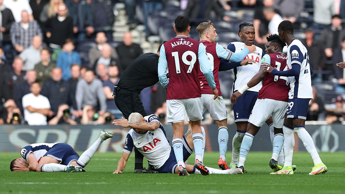 Hollandalı stoper Van de Ven, Kudus’ün bu sert müdahalesine öfkeyle karşılık verirken, Kudus’ün tokat atmasıyla tansiyon iyice yükseldi. Bu esnada olaya müdahale etmeye çalışan Richarlison, Kudus ile çarpışarak kendini yerde buldu.