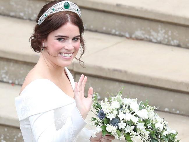 Prenses Eugenie gelinliğiyle kendine hayran bıraktı. Ünlü tasarımcı Peter Pilotto imzalı gelinliğin henüz detayları ortaya çıkmadı ama düşük omuz detayı, uzun kuyruğu, sade bir şekilde topladığı topuzu, doğal tonlarda bıraktığı makyajıyla Eugenie uzun süre konuşulacağa benziyor...