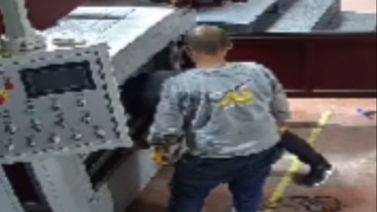 Görüntülerde, yanında işçisi bulunan Şahin'in makinenin içine girdiği ve aniden çalışan cihazı durdurmak için yanındaki işçinin çaba harcadığı yer aldı.