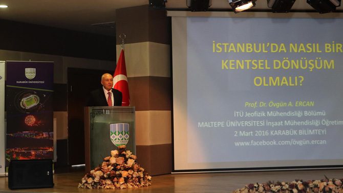 Karabük Üniversitesi'nde düzenlenen 'Doğal Afetler ve Afet Yönetimi' konulu sempozyumda konuşan Prof. Dr. Ercan, dünya üzerinde her yıl 3.5 milyon deprem olduğunu hatırlatarak, bunların yüzde 3'ünün Türkiye'ye düştüğünü söyledi. Türkiye’nin 1’inci derece deprem ülkesi olmadığını belirten Prof. Dr. Ercan, "Türkiye'de 8'den daha büyük depremler olmaz. Türkiye'nin en büyük depremi 1939 yılında Erzincan'da olan 7.9'dur. Türkiye'de daha büyük deprem olmamıştır. '9 olur, 8.5 olur' demek desteksiz atmaktır" dedi.