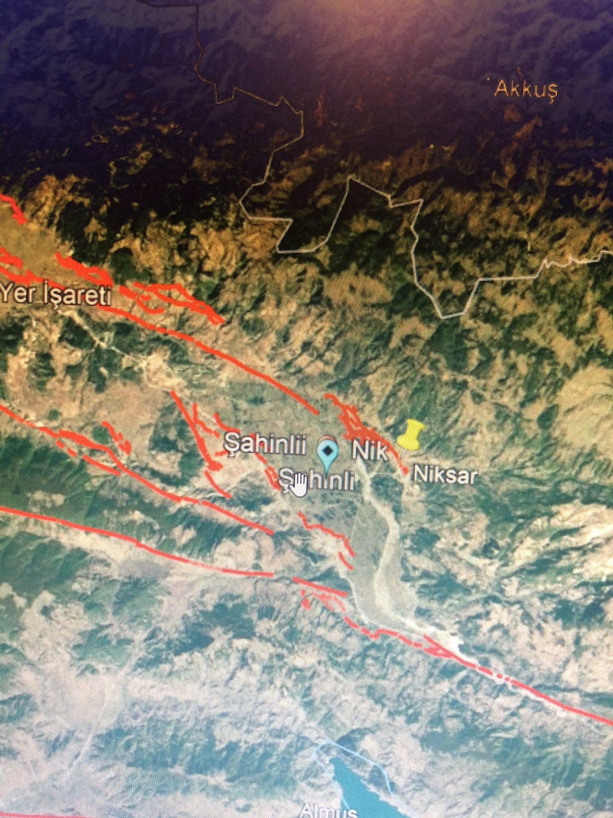 Naci Görür'ün Tokat depremini yorumlarken paylaştığı harita.