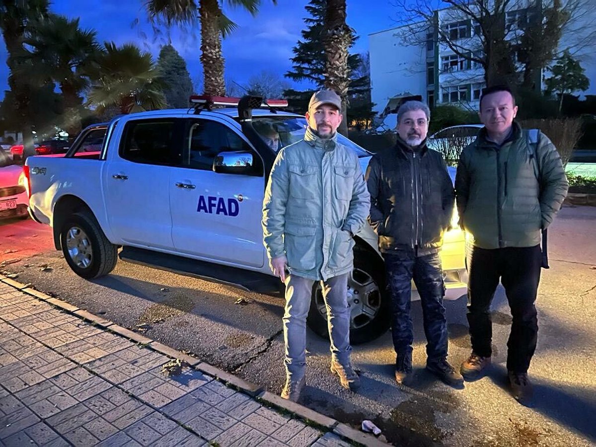 DEÜ DAUM Müdürü ve Jeoloji Mühendisliği Bölümü Öğretim Üyesi Prof. Dr. Hasan Sözbilir, afet bölgesinde Afyon Kocatepe Üniversitesi Deprem Uygulama ve Araştırma Merkezi Müdürü Prof. Dr. Çağlar Özkaymak ve DEÜ-DAUM'dan Öğretim Görevlisi Dr. Özkan Cevdet Özdağ, Eskişehir Osmangazi Üniversitesi Öğretim Üyesi Prof. Dr. Volkan Karabacak ile incelemelerde bulunuyor.