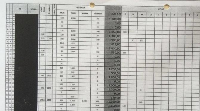 Ayrıca listelerde kirli paranın yanı sıra ilk kez memur olanların ‘ilk maaşları’ndan alınan bağış miktarları, zekat/fitre, hedefler bölümünde ise örgüt mensubu memurlardan alınacak aylık, yıllık ve ödenen şeklinde listelendiği tespit edildi. 2012 yılına ait belgede 35 memurun adı yazarken, maaşlarına göre aylık 100 liradan 300 liraya kadar bağış adı altında para alındığı, yıllık hedeflerin hesaplandığı ve alınan paraların ‘ödenen’ şeklinde kaydedildiği belirlendi. Listeye göre 35 memurdan 2012 yılında yıllık 23 bin 195 lira ‘himmet ve bağış’ adı altında örgüte para toplandığı polis ekiplerince tespit edildi.