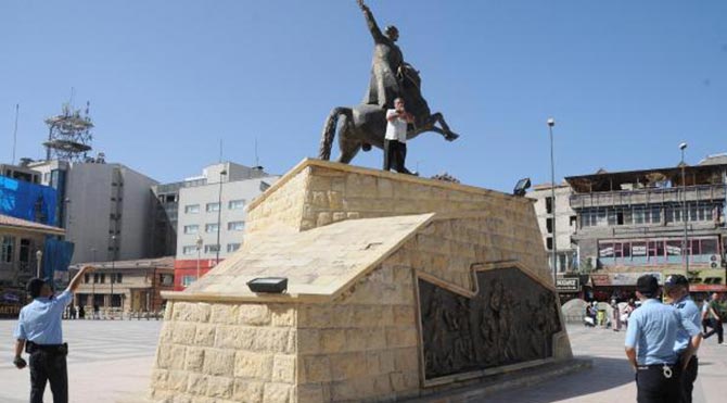 Olay, kent merkezindeki Maarif Meydanı'nda bulunan Atatürk heykelinde meydana geldi. Terör saldırılarını protesto etmek için Atatürk heykeline çıkan Nazım A.yı görenler durumu polise bildirdi.