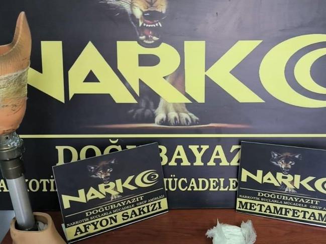Ağrı İl Emniyet Müdürlüğü'ne bağlı Doğubayazıt Narkotik Suçlarla Mücadele Büro Amirliği ekiplerince, uyuşturucu veya uyarıcı madde ticaretinin yapılmasını engellemeye yönelik yürütülen çalışmalar sonucunda, İran'dan Türkiye'ye, protez bacağına gizlediği uyuşturucuyu sokmaya çalışan F.E. isimli şüpheliyi yakalandı.
