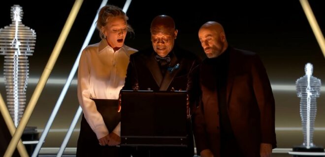 "En İyi Erkek Oyuncu" ödülünü vermek üzere sahneye çıkan Samuel L. Jackson'a, John Travolta ve Uma Thurman'da eşlik etti. Jackson konuşurken diğer oyuncular da Pulp Fiction filmindeki ikonik danslarını tekrar gerçekleştirdi.