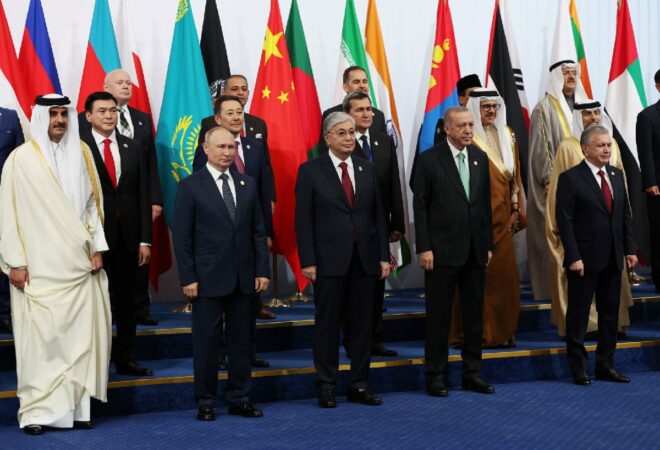 Astana’daki Bağımsızlık Sarayı’nda Kazakistan Cumhurbaşkanı Kasım Cömert Tokayev’in ev sahipliğinde başlayan zirveye, Türkiye Cumhurbaşkanı Recep Tayyip Erdoğan, Rusya Devlet Başkanı Vladimir Putin, Azerbaycan Cumhurbaşkanı İlham Aliyev, İran Cumhurbaşkanı İbrahim Reisi, Irak Cumhurbaşkanı Berhem Salih, Katar Emiri Şeyh Temim bin Hamed Al Sani, Filistin Devlet Başkanı Mahmud Abbas, Çin Başkan Yardımcısı Wang Qishan, Pakistan Başbakanı Şahbaz Şerif, Özbekistan Cumhurbaşkanı Şevket Mirziyoyev, Kırgızistan Cumhurbaşkanı Sadır Caparov, Tacikistan Cumhurbaşkanı İmamali Rahman, Vietnam Başkan Yardımcısı Vo Thi Anh Xuan’ın yanı sıra gözlemci üye statüsüne sahip Belarus Cumhurbaşkanı Aleksander Lukaşenko katılıyor.