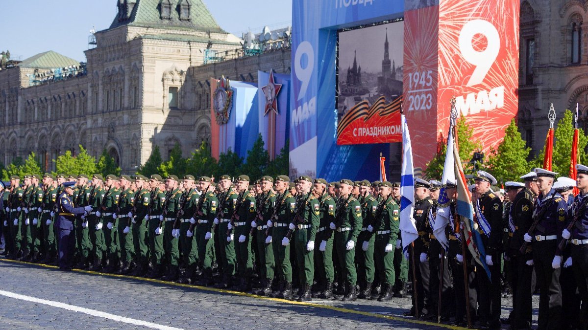 Zafer Günü'nde birçok silah ve askeri araç korteje katıldı. Iskender-M isimli füzeatar da katılımcıların önünde tur attı.Rusya Devlet Başkanı, "Ukrayna halkı, devlet darbesinin ve batının amaçlarının tutsağı oldu. Sovyetler Birliği halkının Nazi Almanyasına karşı elde ettiği zaferde üstlendiği rolü hatırlıyoruz. ABD, İngiltere ve Çin'in İkinci Dünya Savaşı'nda üstlendikleri rolleri hatırlıyoruz" yorumunu yaptı.