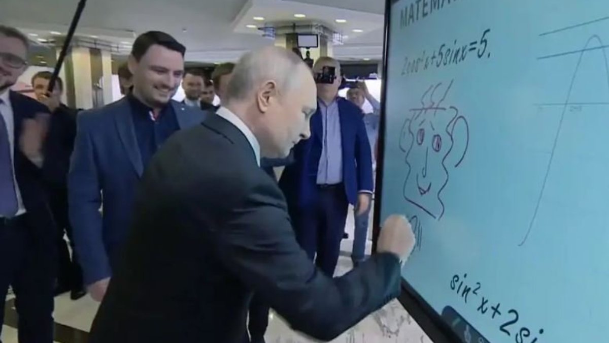 Putin'in akıllı tahta ile imtihanı: Çizimi alay konusu oldu