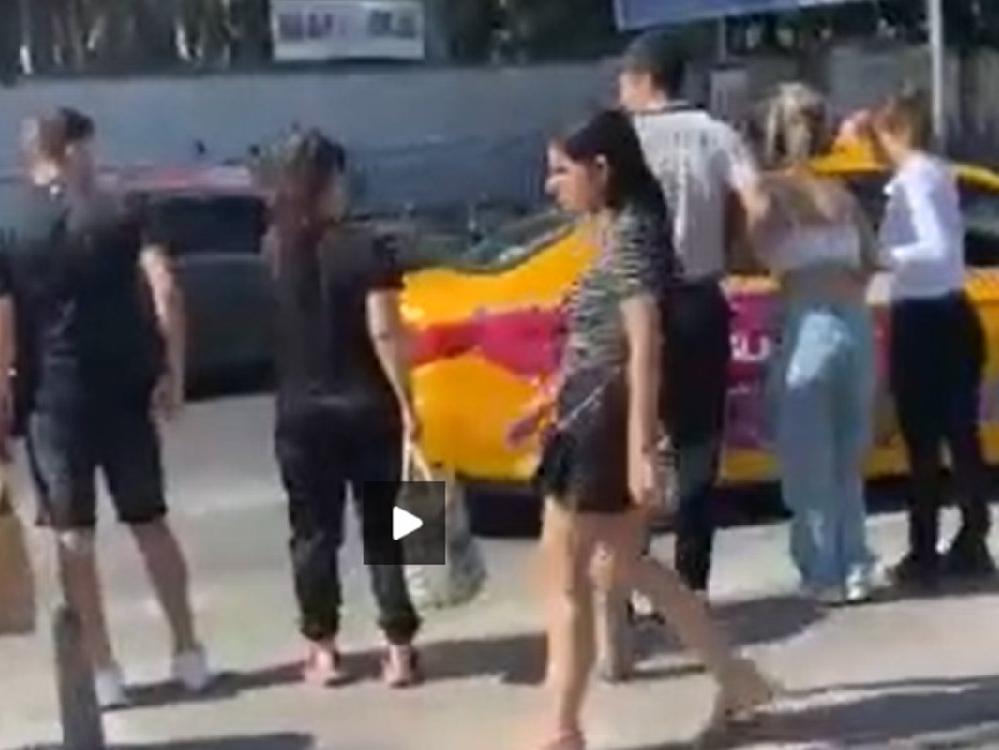 Taksicilerin kadını araçlarına almayarak uzaklaştığı anlar bir vatandaşın cep telefonu kamerasıyla görüntülendi. İHA