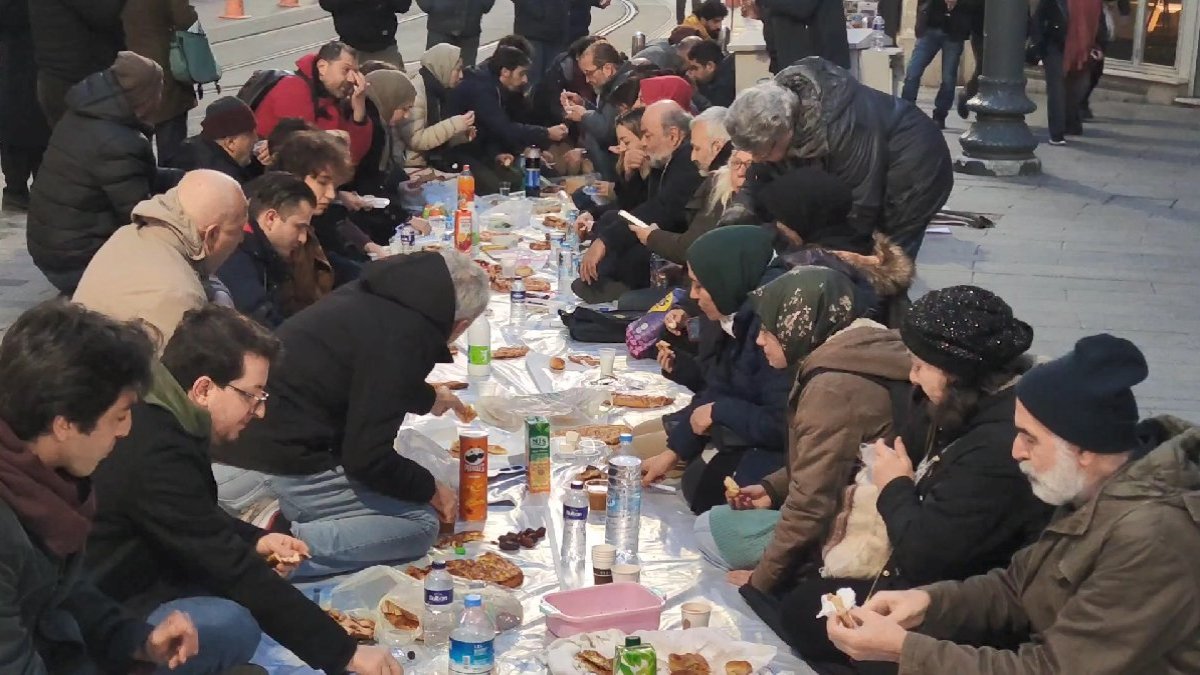 Farklı kesimlerden insanların bir araya geldiği, 2011 yılından bu yana kurulan yeryüzü sofrası bu yılın ilk iftarında Beyoğlu Tünel Meydanı'nda kuruldu.