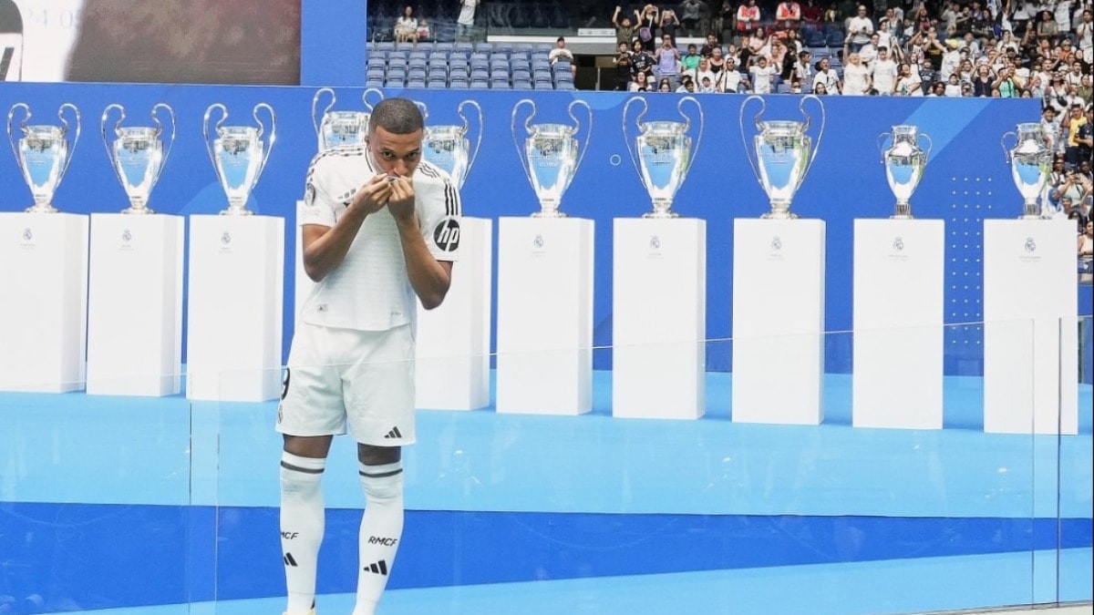 UEFA Şampiyonlar Ligi ve İspanya Birinci Futbol Ligi'nde (LaLiga) geçen sezonu şampiyon tamamlayan Real Madrid, Paris Saint-Germain'den (PSG) transfer ettiği Fransız forvet oyuncusu Kylian Mbappe için Santiago Bernabeu Stadı'nda 80 binden fazla taraftarın katılımıyla bir tören düzenledi.