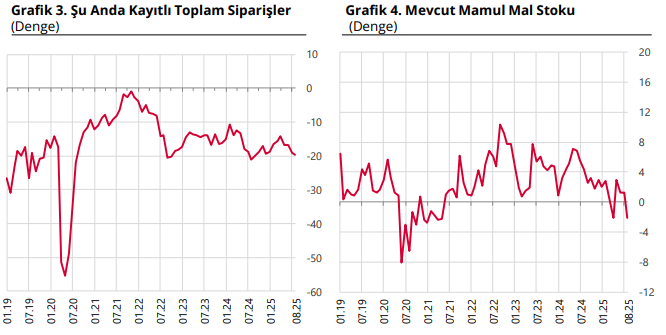 Mevcut toplam siparişlerin mevsim normallerinin altında olduğu yönündeki değerlendirmelerin bir önceki aya göre güçlendiği görülmektedir. Mevcut mamul mal stokları seviyesinin mevsim normallerinin üzerinde olduğunu bildirenler lehine olan seyrin ise mevsim normallerinin altında olduğunu bildirenler lehine döndüğü gözlemlendi.