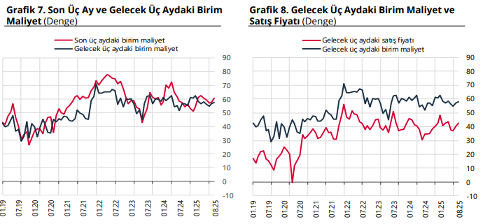 Ortalama birim maliyetlerde, gelecek üç ayda artış olacağını bekleyenler ve son üç ayda artış olduğunu bildirenler lehine olan seyrin güçlendiği görüldü. Gelecek üç aydaki satış fiyatına ilişkin artış yönlü beklentilerin de güçlendiği gözlemlendi. Gelecek on iki aylık dönem sonu itibarıyla yıllık ÜFE beklentisi bir önceki aya göre 1,4 puan azalarak yüzde 35,4 seviyesinde gerçekleşti.