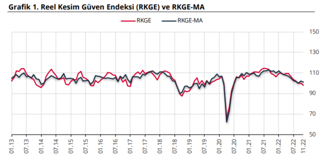 Buna göre 2022 yılı Kasım ayında reel kesim güveni, bir önceki aya göre 2,4 puan azalarak 97,9 seviyesine düştü.