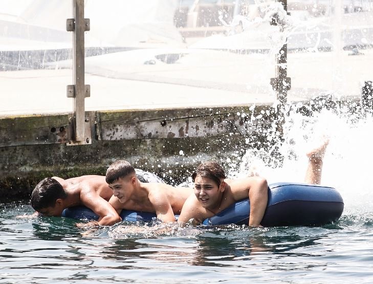 İstanbul'da etkisini gösteren sıcak hava dolayısıyla bunalan bazı vatandaşlar boğazda denize girerek serinlemeye çalıştı.