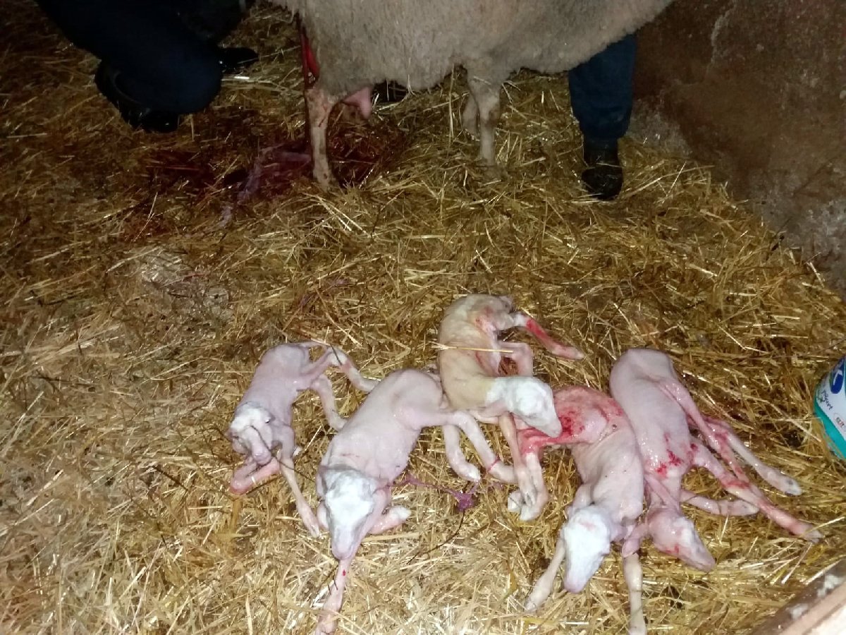 Veteriner Hekim Yüksel Turhan'ın müdahalesi ile gerçekleşen doğumda, koyun 5 kuzu dünyaya getirdi.KOYUN