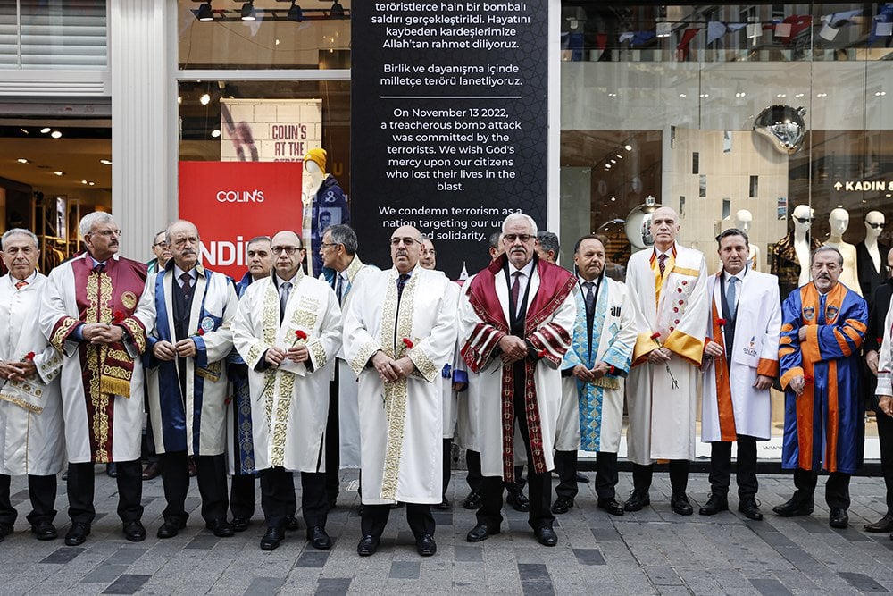 İstanbul Üniversitesi koordinesinde kentte bulunan devlet ve vakıf üniversitelerinin rektörleri de cübbelerini giyerek patlamanın yaşandığı alana geldi.