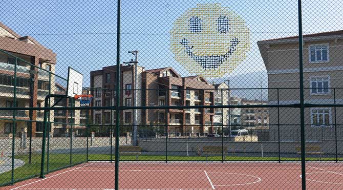 Nilüfer’in 235. parkı olarak açılan parkta yer alan basketbol sahasındaki tel örgülere yapılan fosforlu gülen yüzler de özellikle geceleri mahalle halkının dikkatini çekiyor. CİHAN