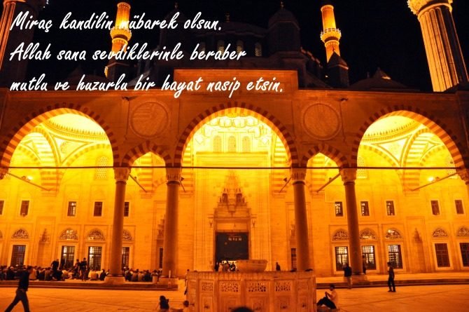 -Bir damla umut serpilsin yüreğine, bin tatlı umut dolsun günlerine, hayallerin gerçekleri bulsun, bütün duaların kabul, Miraç Kandiliniz mübarek olsun!
