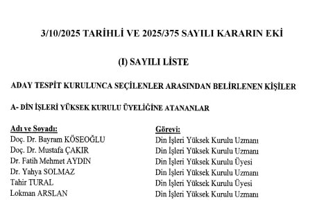 Resmi Gazete yayınlandı. Diyanet İşleri Başkanı'nın değişmesinin ardından eski Başkan Ali Erbaş döneminde görev alan kadro da değilti. Öte yandan Din İşleri Yüksek Kurulu'na yeni atamalar yapıldı.