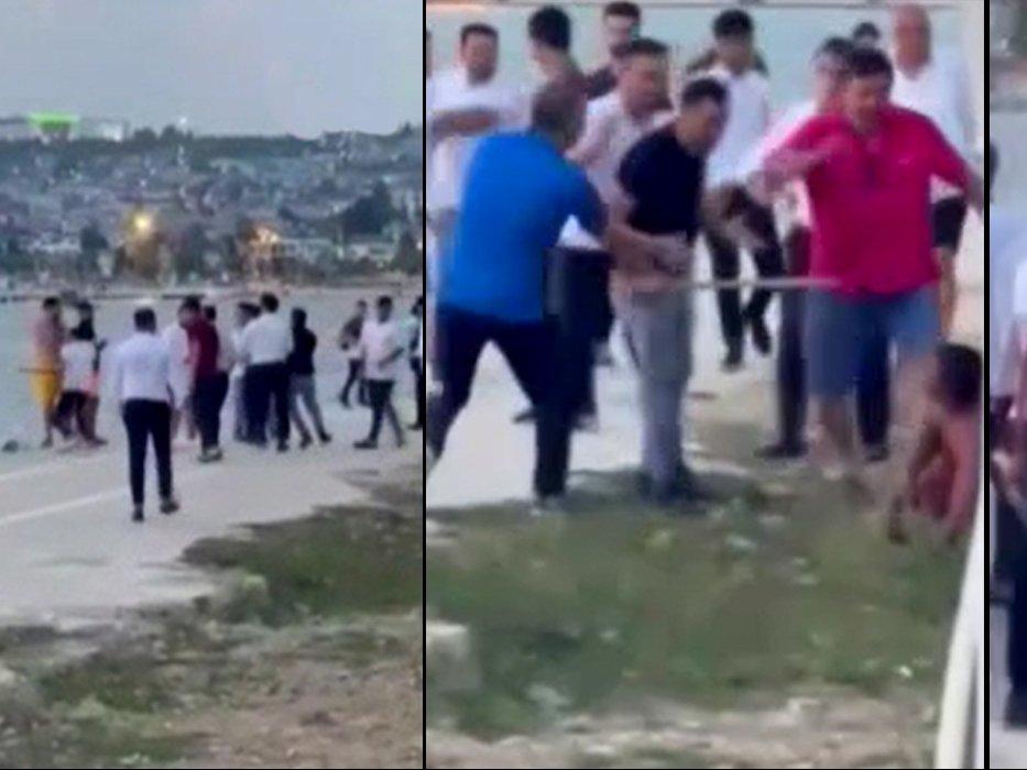 Dakikalarca süren olayda sopalardan kaçan şahıslar, çareyi denize atlamakta bulurken o dakikalar ise çevrede bulunan bir vatandaşın cep telefonu kamerasına anbean yansıdı.