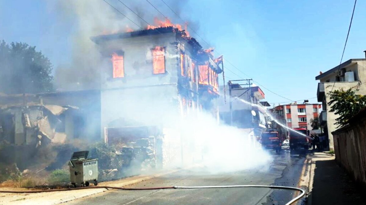 Muğla’nın Milas ilçesine bağlı Firuzpaşa Mahallesi Selobaşı Caddesi’ndeki iki katlı tarihi ahşap binada yangın çıktı. Kısa sürede büyüyen yangın binanın tamamını sardı.