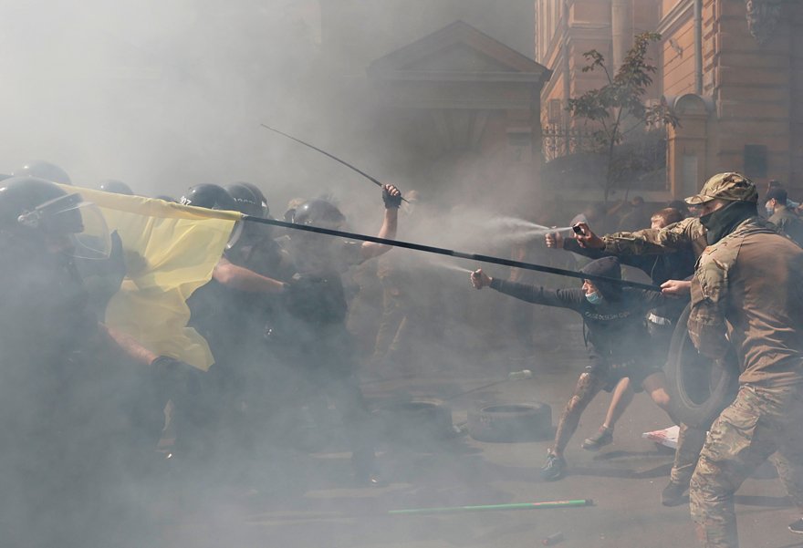 Rusya ile gerilimin bir hayli yüksek olduğu Ukrayna'da iç siyaset de oldukça hareketliydi. 14 Ağustos'ta Devlet Başkanlığı binası önünde polis ile göstericiler karşı karşıya geldi.