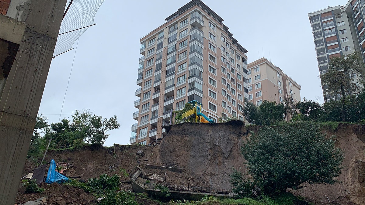 Rize’de etkili olan sağanak nedeniyle meydana gelen heyelanda 10 katlı binaya ait istinat duvarı çöktü. Heyelanda, sitenin önündeki çocuk parkı ile kapalı otopark tedbir amaçlı kapatıldı.