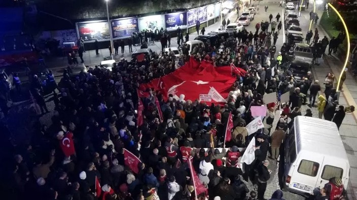 Cumhuriyet Caddesi’nde bulunan CHP Rize il Başkanlığı önünde toplanan kalabalık grup, Atatürk Caddesi boyunca yürüdü. Cadde boyunca ellerinde Türk bayrakları ve dövizlerle slogan atan gruba zaman zaman çevredeki vatandaşlar tepki gösterdi.
