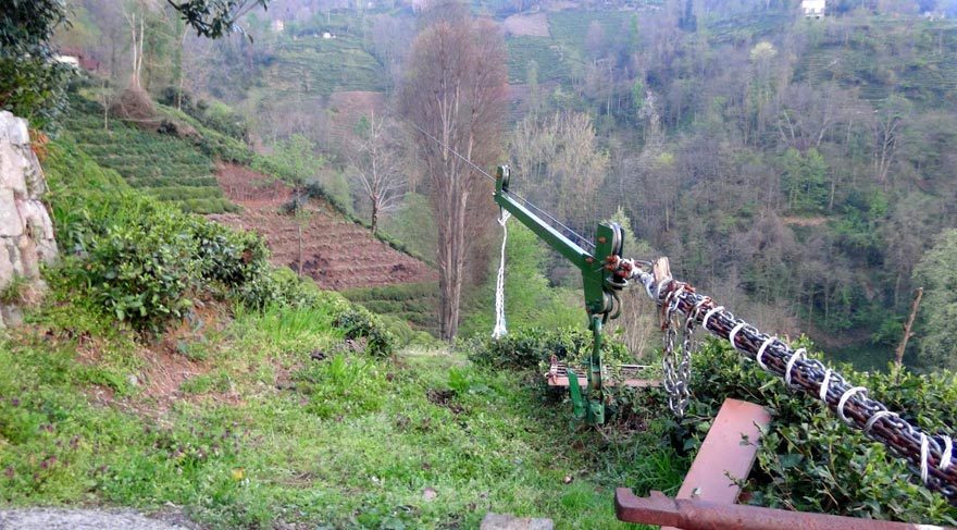 Olay, saat 17.30 sıralarında merkeze bağlı Veliköy Köyü'nde meydana geldi. Çay tarlalarına gübre taşıyan Mustafa Kurt ile Onurcan Agun, evlerine gitmek için, 550 metre uzunluğunda ve zeminden yaklaşık 150 metre yüksekten geçen ilkel teleferiğe bindi.