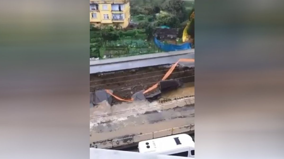 Rize'nin Çayeli ilçesinde, taşkın önleme kapsamında istinat duvarı yapılan yol, dere yatağına çöktü. Son anda 1 kişinin kaçarak kurtulduğu yolun çökme anı, cep telefonu kamerasına yansıdı.