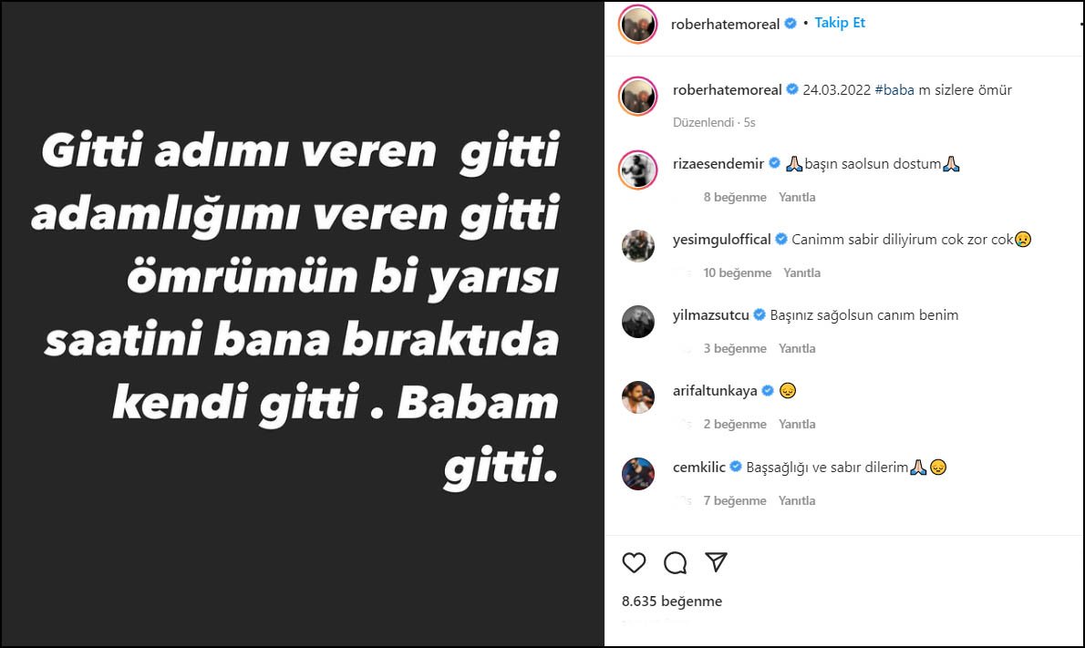 Takipçileri başsağlığı mesajlarıyla Rober Hatemo'ya destek oldu.