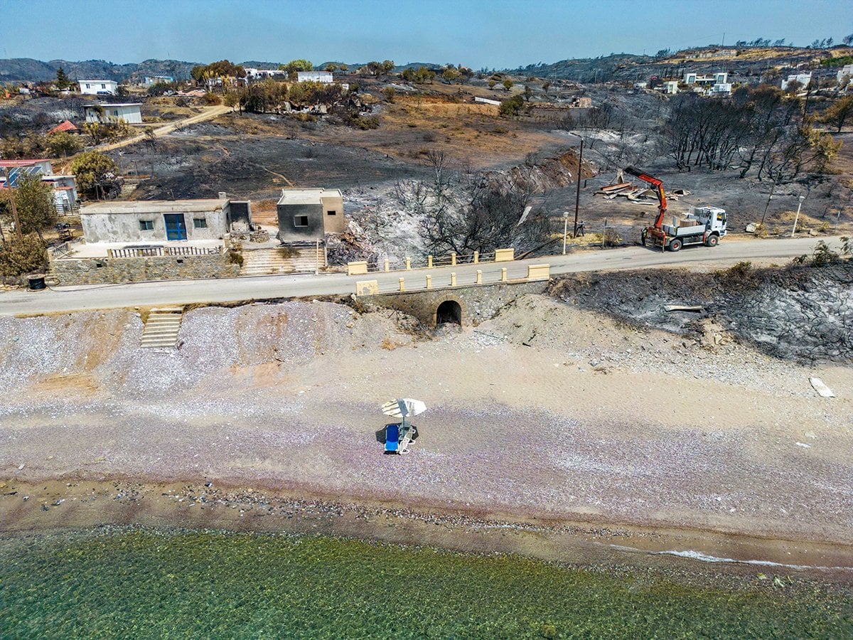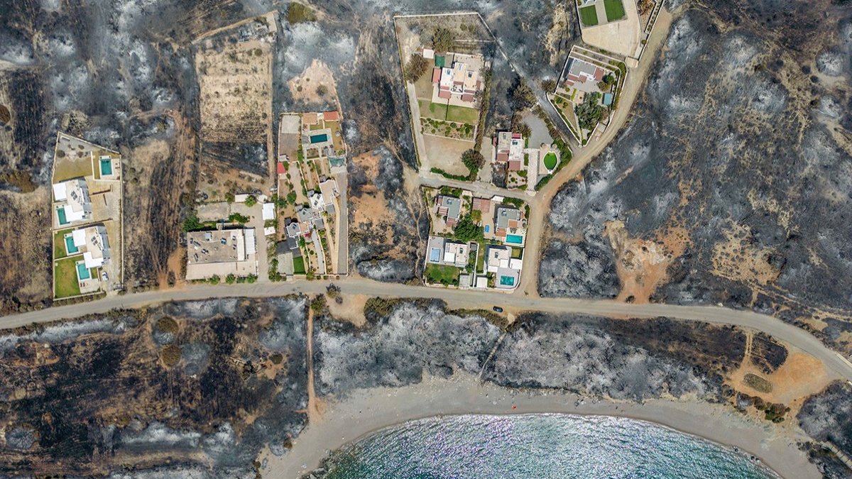Uluslararası haber ajanslarının paylaştığı ve havadan çekilen fotoğraflarda Rodos'taki yıkımın boyutu gözler önüne serildi.