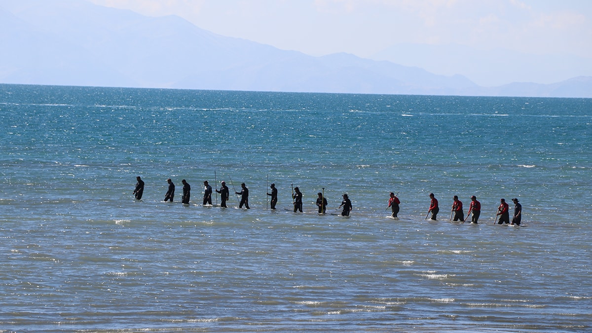 Polis helikopteri havadan tarama yaparken, 60 kişilik ekip de gölün derin olmayan bölgelerinde demir çubuklarla arama yapıyor. Geniş bir alanda sürdürülen aramaların akşam saatlerine kadar süreceği belirtildi.