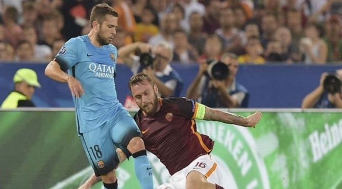 UEFA Şampiyonlar Ligi E Grubu ilk maçında karşılaşan Roma ile turnuvanın geçen yılki şampiyonu Barcelona 1-1 berabere kaldı. Roma Olimpiyat Stadı'nda, Hollandalı hakem Björn Kuipers'ın yönettiği Roma - Barcelona maçına etkin başlayan İspanyol ekibi, 21'inci dakikada Luis Suarez'in kafa golüyle avantaj yakaladı. Roma, 9'uncu kez katıldığı Şampiyonlar Ligi ilk maçında Barcelona karşısında 28'inci dakikada Alessandro Florenzi'nin aşırtma vuruşuyla beraberliğe ulaştı. 140 ülkede canlı yayınlanan ve stadyumda yaklaşık 70 bin kişinin izlediği karşılaşma 1-1 sona erdi.