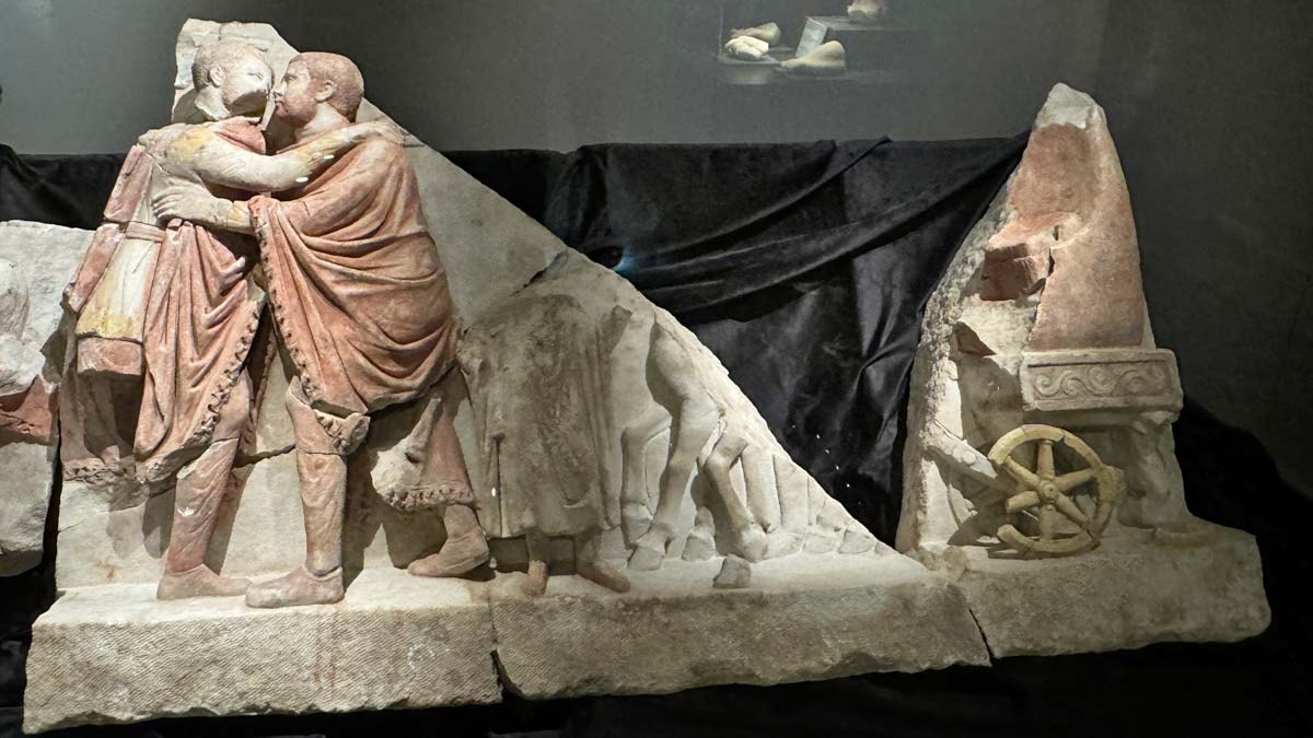 Aynı dönemde bulunan ve 10 ayrı kırık parçadan bir araya getirilerek restore edilen, Roma İmparatorları Diokletianus ve Maximianus'un şehre girişte yapılan geçit töreninde tören arabasından inerek birbiriyle kucaklaştığı sahnenin tasvir edildiği rölyef ise 23 yıl sonra tarih ve sanatseverlerin ilgisine sunuldu.