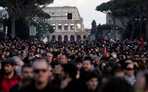 Aşırı sağcı Kuzey Ligi partisi, hükümetin ve Avrupa Birliği'nin göç politikalarını protesto amacıyla kentin en merkezi ve büyük meydanlarından Piazza del Popolo'da bir gösteri düzenledi. "Renzi evine!" adı verilen gösteriye, neo-faşist Casapound grubu üyelerinin de aralarında yer aldığı binlerce kişi katıldı.