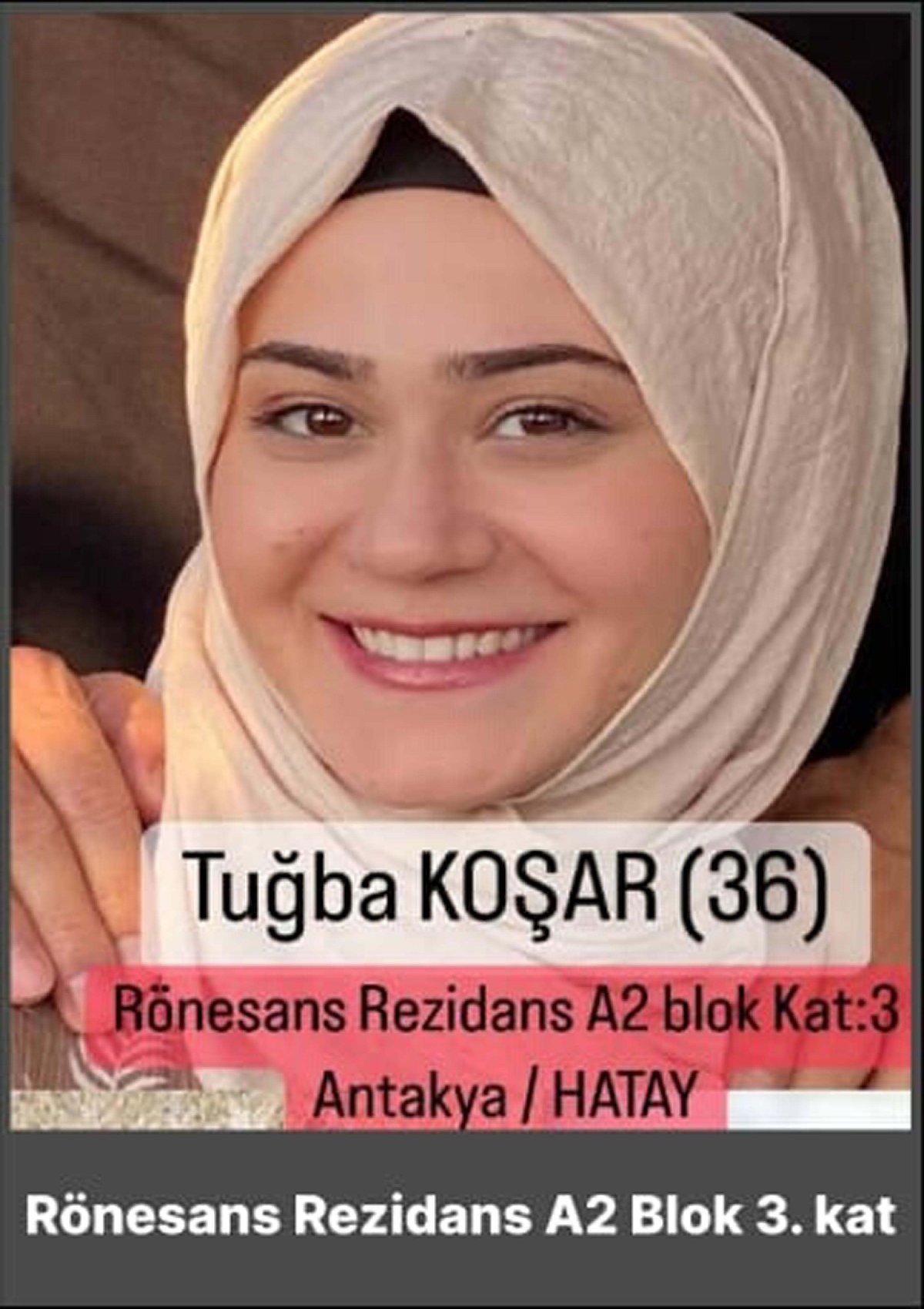 Depreme, rezidansın A2 blokunda yakalanan özel eğitim öğretmeni Tuğba Koşar ile 2 çocuğu Mustafa Kemal ile Mehmet Akif'ten de haber alınamadı.