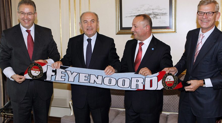 FOTO:İHA- Ziyarette, Topbaş'a Rotterdam'ın dünyaca ünlü futbol takımı Feyenord'un kaşkolu hediye edilmişti.İSTANBUL'A GELMİŞTİ