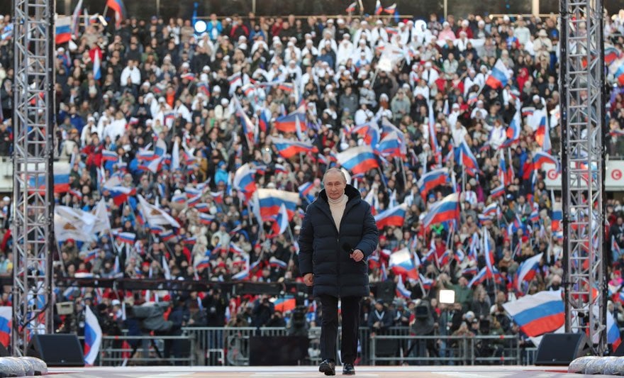 Putin'in Moskova'da yaptığı miting uluslararası kamuoyunda gündem oldu.