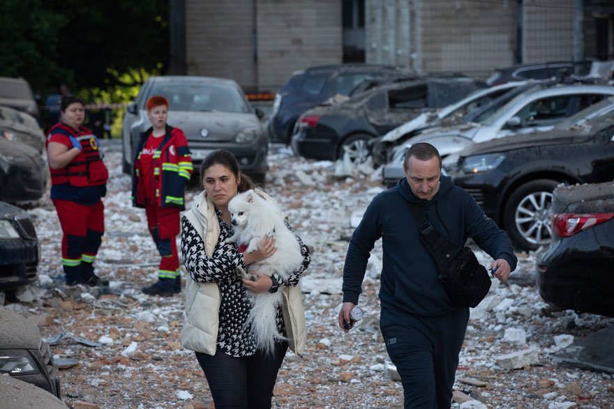 Sabah saatlerinde çekilen fotoğraflarda saldırının boyutu gözler önüne seriliyor.Kiev Belediye Başkanı Vitali Kliçko, Telegram üzerinden bir paylaşımda bulunarak, "Sığınakları terk etmeyin" dedi.