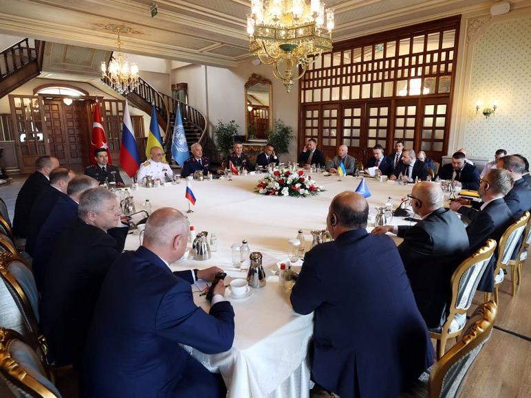 Ukrayna, Rusya ve Türkiye'den askeri heyetler, dün İstanbul'da BM yetkilileriyle Ukrayna'nın Karadeniz'deki limanlarından tahıl ihracatının yeniden başlatılmasını sağlayacak olası bir anlaşmayı görüşmek için bir araya gelmişti.
