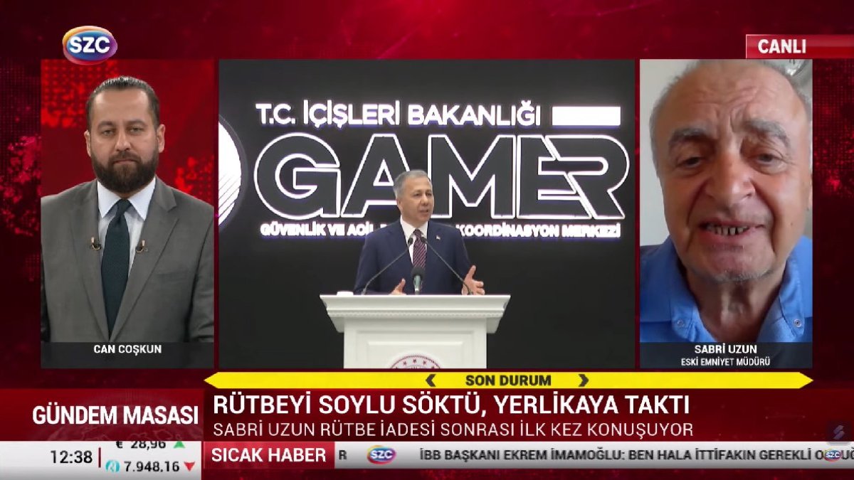 Süleyman Soylu'nun İçişleri Bakanı olduğu dönemde rütbesi sökülen emniyet mensupları arasında yer alan ve yeni İçişleri Bakanı Ali Yerlikaya döneminde görevine iade edilen eski Emniyet Genel Müdürlüğü İstihbarat Dairesi Başkanı Sabri Uzun, SÖZCÜ TV canlı yayınında, gazeteci Can Coşkun'a dikkat çeken açıklamalar yaptı.