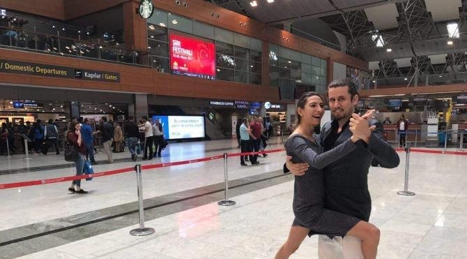 Terminal içinde yolcular ile havalimanı personeline tango figürlerini sergileyen Muammer Bozdemir ve Tuğba Andaç'ın dansı renkleri görüntülere yol açtı. Müzik eşliğinde dans eden çifti yolcular beğeniyle izledi. Yolcular, dans gösterisi nedeniyle terminal işletmicisi İSG ve çifte teşekkür ederek, beğenilerini dile getirdiler.